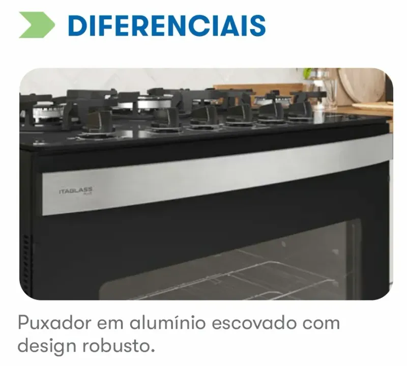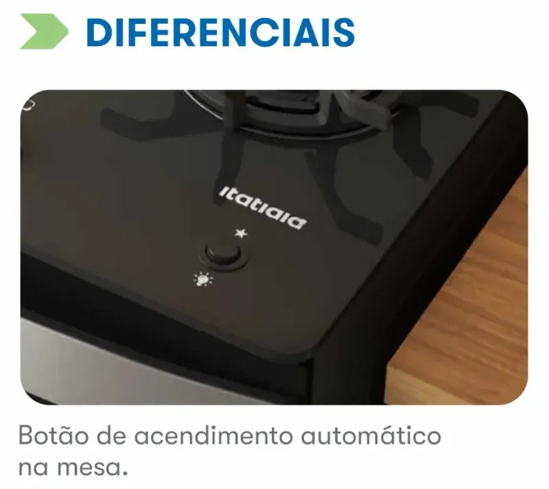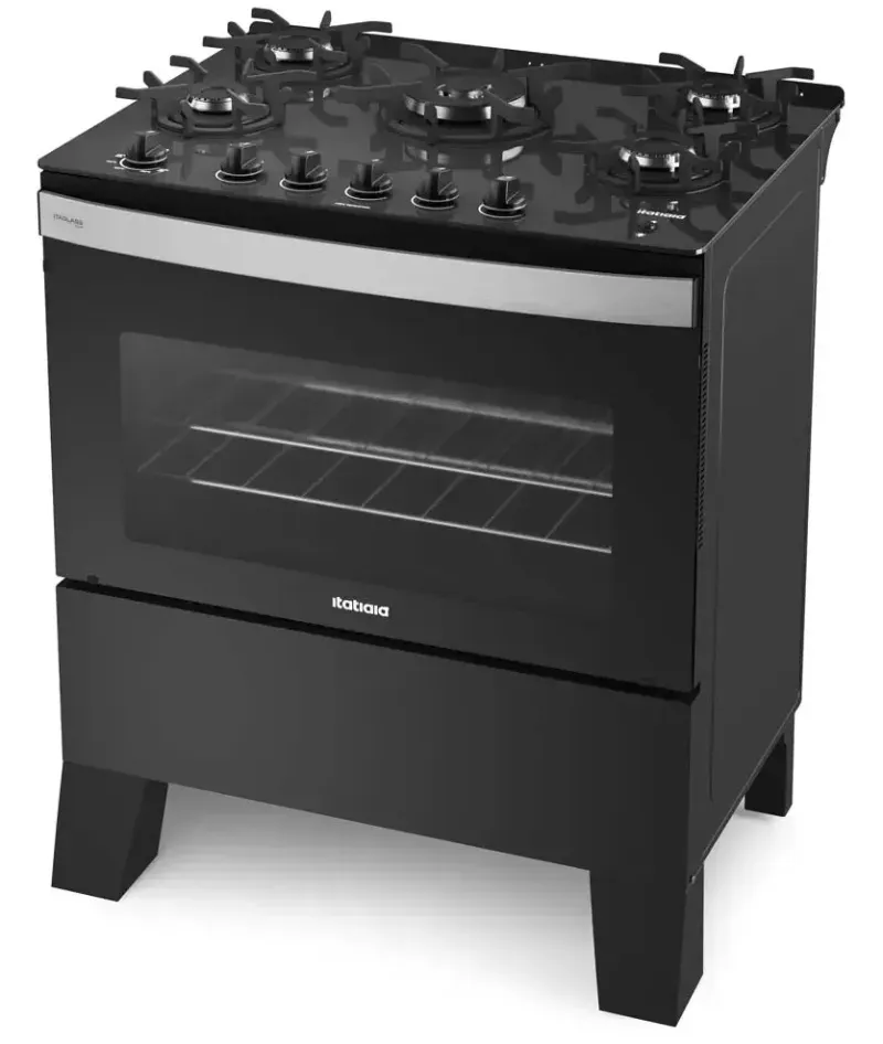 Fogão 5 Bocas Itatiaia Itaglass Plus Tripla Chama Mesa de Vidro Preto Bivolt - Design Glass e Potência para sua Cozinha!