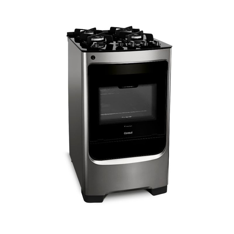 Fogão Consul 4 Bocas Inox com Mesa de Vidro Temperado e Grades de Ferro Fundido - Bivolt