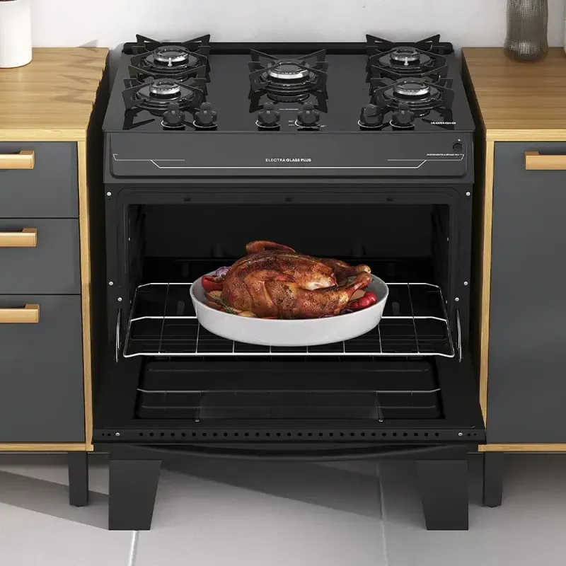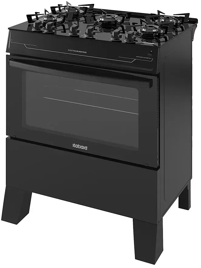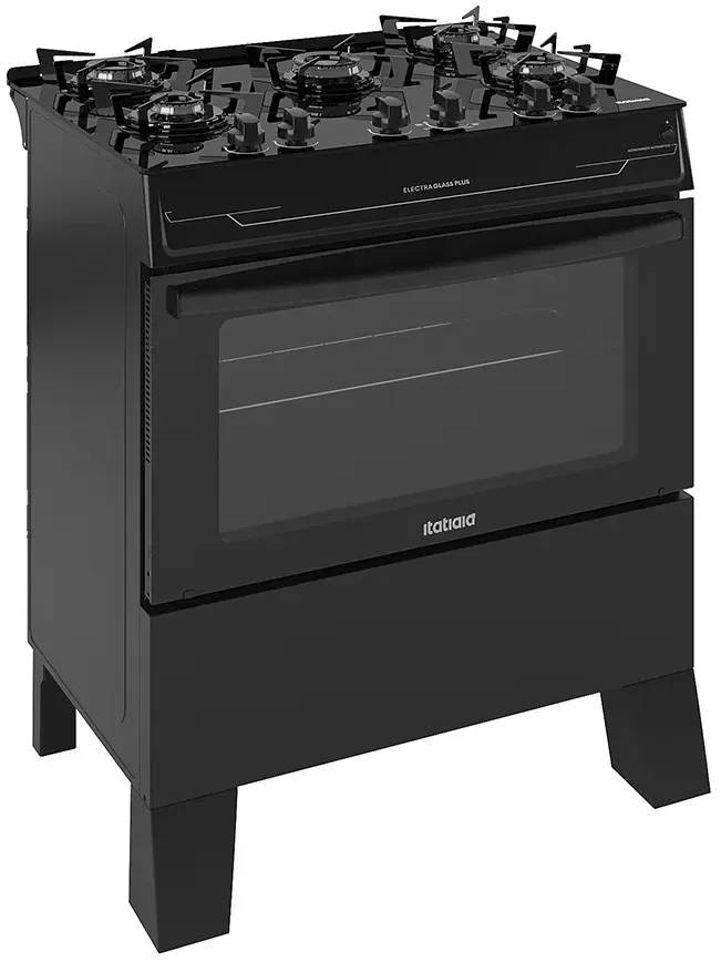 Fogão Itatiaia Electra Glass Plus 5 Bocas Preto com Mesa de Vidro Temperado