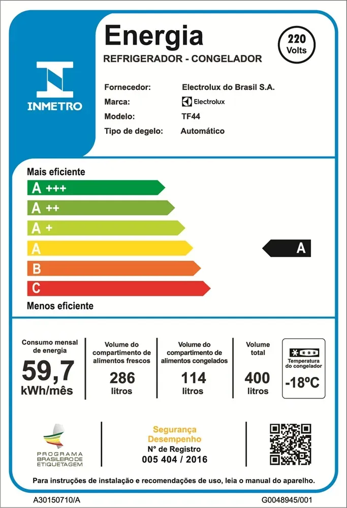 Geladeira Electrolux 400 Litros TF44 Frost Free AutoSense Branca 127V - Economia e Frescor por Mais Tempo