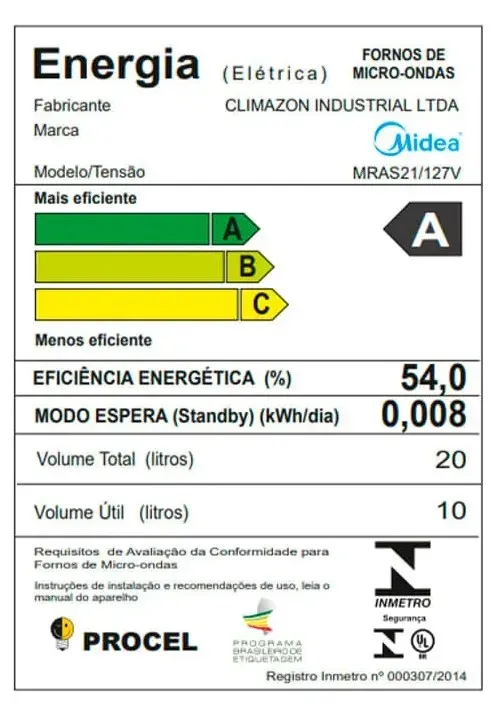 Micro-ondas Midea MRAS21 20L 127V Minuto Fácil – Rapidez, Funções e Economia