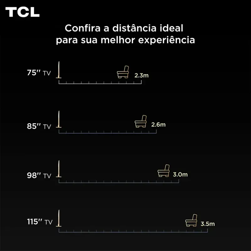 Smart TV 4K TCL 55" 55C6K QD-Mini LED 144Hz VRR HDMI 2.1 Dolby Vision IQ e Subwoofer Integrado