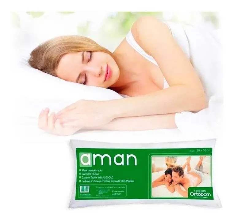 Travesseiro Ortobom Aman Corpo Inteiro 140x50cm em Fibras Siliconadas Macio